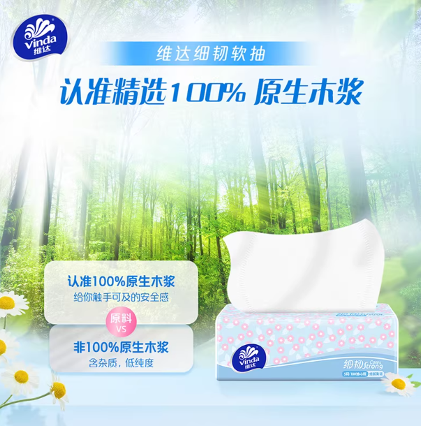 名称:维达细韧抽纸软抽S码3层100抽20包纸巾箱装